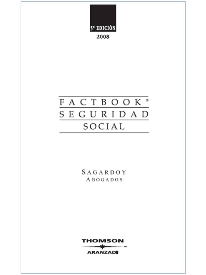 La nueva edición 2008 del Factbook Seguridad Social incorpora las últimas modificaciones del sistema español de asistencia Social con el prestigio añadido de la firma «Sagardoy Abogados». Información práctica, rápida visual e indispnsable para dominar los procedimientos de la Seguridad Social.