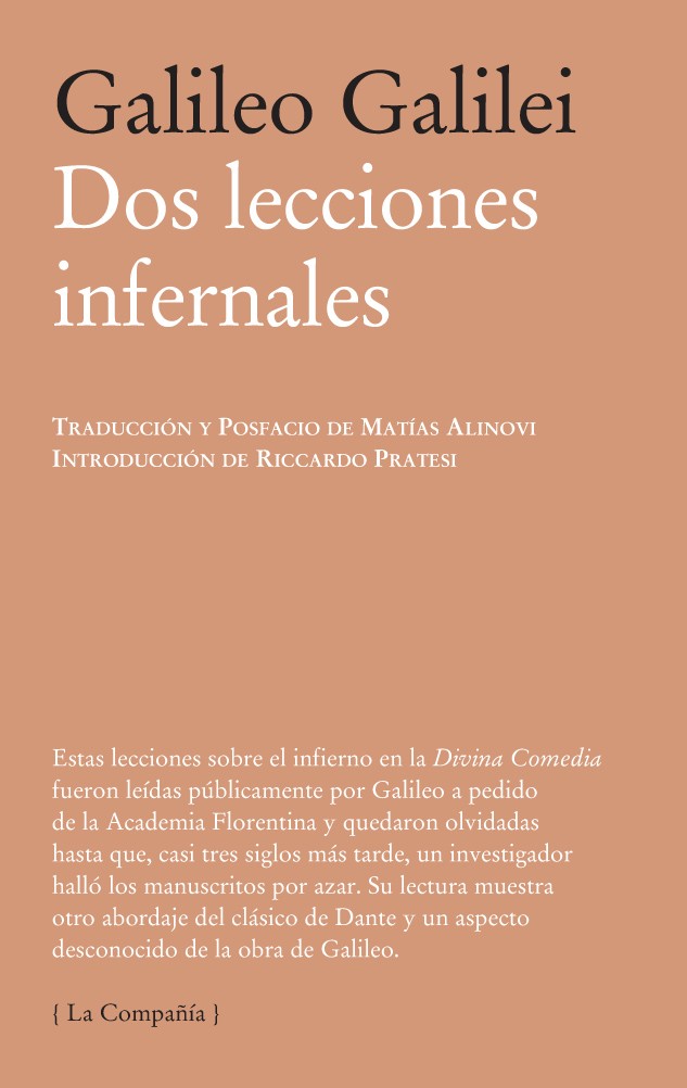 Estas lecciones sobre el infierno en la Divina Comedia fueron leídas públicamente por Galileo a pedido de la Academia Florentina y quedaron olvidadas hasta que, casi tres siglos más tarde, un investigador halló los manuscritos por azar. Su lectura muestra otro abordaje del clásico de Dante y un aspecto desconocido de la obra de Galileo.