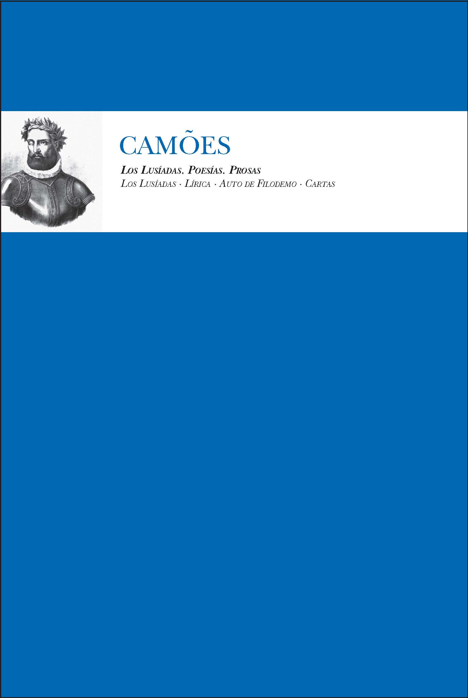 La obra de Luís Vaz de Camões es complicada en origen y no ha gozado de ediciones que se ajusten a su consideración del gran clásico de la letras portuguesas. La BLU ofrece ahora una obra selecta y en edición bilingüe que puede considerarse el intento más ambicioso e integral para ofrecer la obra del clásico portugués. Se incluyen en este tomo la mejor versión hasta ahora realizada en español de su gran y universal poema épico Los Lusíadas; una antología de su poesía lírica, con todas las complejidades de su autoría y fijación textual definitiva; la selección de una de sus pocas obras de teatro, el Auto de Filodemo; y la selección de tres de sus cinco cartas literarias conocidas. Todo ellos acompañado de la excelente introducción de Helder Macedo, y el aparato crítico acostumbrado en los libros de la BLU (prólogos, anotaciones, bibliografía, cronología, etc.) realizados de forma impecable por la profesora Elena Losada Soler.