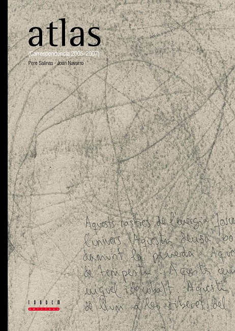 El projecte Atlas es va iniciar el 14 de maig de 2005 amb una pintura de Pere Salinas que va donar lloc a un poema de Joan Navarro el 19 de maig de 2005. Aquest poema portaria a la llum una nova pintura el dia 1 de juny, la qual descobriria un poema entre els plecs dels seus colors el dia 10 de juny... Començava així una correspondència fructífera entre el pintor i el poeta que va concloure el 29 de març de 2007. Amb pròlegs de Daniel Giralt-Miracle i d039;Enric Sòria. A les últimes pàgines trobarem la traducció al castellà dels textos i dels poemes.