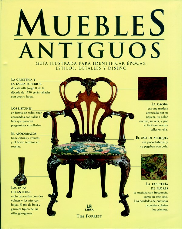 Todo amante del mobiliario antiguo debe sostener sus conocimientos en esta enciclopedia ilustrada que divide su contenido en tipos de muebles (sofás, armarios, escritorios, muebles de jardín, bargueños, alacenas, sillas, etc.) con hermosas ilustraciones y dibujos aclaratorios de los distintos diseños y explicaciones de los materiales como maderas nobles, incrustaciones, tapizados o baños de oro.
