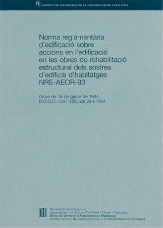 Norma de caràcter tècnic per concretar les càrregues que pot suportar un edifici destinat totalment o parcialment a l?ús d?habitatges, que hagi de ser objecte d?actuacions de rehabilitació estructural de sostres. També s?aplica a les intervencions de reforç o susbstitució dels sostres dels habitatges. Defineix les accions mínimes a considerar que són les concàrregues (pes propi i càrrega permanent) i les sobrecàrregues (ús, envans, aïllades, terrasses i horitzontals) i els coeficients de seguretat variables amb el tipus d?acció, determinació i prospecció realitzades.