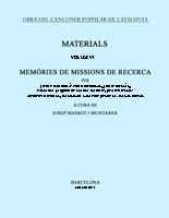 Missions fetes a la comarca del Vallès (1924-1924), a les Peces d'Albinyana (1925), a la Seu d'Urgell, Pallars i Vall d'Aran (1925), a la comarca d'Olot (1925) i a Mallorca: Llucmajor, Montuïri, Randa, Campos, Porreres, Algaida, Pina, es Capdellà (1925). Edició de les memòries corresponents, d'un gran interès musical i etnogràfic; selecció de textos de cançons recollides (amb els textos musicals reproduïts en facsímil) i de les fotografies dels cantaires. Complets índexs de noms i de topònims, com en tots els volums posteriors.