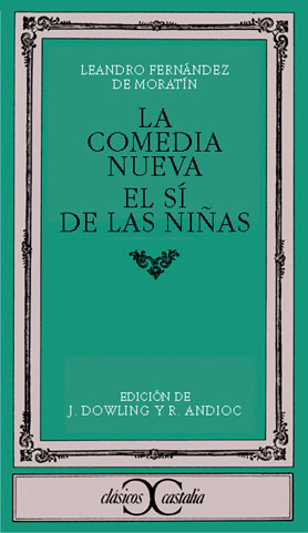 La acción de LA COMEDIA NUEVA es sencilla: El autor dramático, su familia y amigos almuerzan en un café cerca del teatro donde se estrena su primera comedia. Son las tres y media (según el reloj del pedante don Hermógenes) y el espectáculo comenzará a las cuatro. Bastante más tarde, después de que estamos enterados de todas las ilusiones que se han formado los personajes por el éxito de la comedia, se pregunta de nuevo la hora, y el mismo don Hermógenes responde: Yo lo diré. Las tres y media en punto. Todos se precipitan al teatro habiendo perdido el primer acto y la tonadilla, llegando apenas a tiempo para presenciar el alboroto. Todos vuelven al café y se resignan a la pérdida de sus ilusiones. Don Eleuterio, el autor, es el compedio de todos los malos autores que escribían en aquella época, y su comedia un monstruo imaginario, compuesto de todas las extravagancias que se representaban en los teatros de Madrid.Por su parte, si EL SÍ DE LAS NIÑAS se representó con aplauso excepcional para la época, fue porque su argumento, particularmente grato a Moratín y desarrollado además por un buen dramaturgo, corresponde a una de las preocupaciones esenciales del público de la época: el conflicto de la autoridad paterna y la libertad de los hijos, el de los imperativos sociales y los derechos del amor, es decir, del individuo, esencialmente de la mujer.Esto resulta del abuso de autoridad, de la opresión que la juventud padece; éstas son las seguridades que dan los padres y los tutores, y esto lo que se debe fiar en el sí de las niñas... Por una casualidad he sabido a tiempo el error en que estaba...El sí de las niñas. Acto tercero, escena XIII.