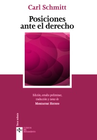 Posiciones ante el derecho contiene la traducción anotada de tres obras de Carl Schmitt: Ley y juicio. Examen sobre el problema de la praxis judicial de 1912; Derechos de libertad y garantías institucionales en la Constitución del Reich de 1931; y Sobre los tres modos de pensar la ciencia jurídica de 1934. Las dos primeras obras ven la luz en español por primera vez. ¿Por qué reunir estas tres obras en una sola edición? Porque en su afán por aclarar el estatuto jurídico de la decisión, definen la posición de Schmitt ante el derecho. Los textos descubren a un jurista en lucha con un contexto intelectual dominado por el positivismo jurídico. Su interés es poner de relieve que el derecho no está solamente constituido por normas, sino también por decisiones e instituciones como pone de manifiesto en Sobre los tres modos de pensar la ciencia jurídica. El derecho no es un ámbito autónomo que flota abstractamente al margen de la realidad, sino que está encarnado cultural e institucionalmente. Así lo supone el concepto de garantía institucional, alumbrado por primera vez por el jurista de Plettenberg. En Ley y juicio propone una respuesta original y provocadora a la pregunta por cuándo una sentencia judicial es correcta. El estudio preliminar de Montserrat Herrero procura dar razón de la original reflexión de Carl Schmitt en torno al fenómeno jurídico.