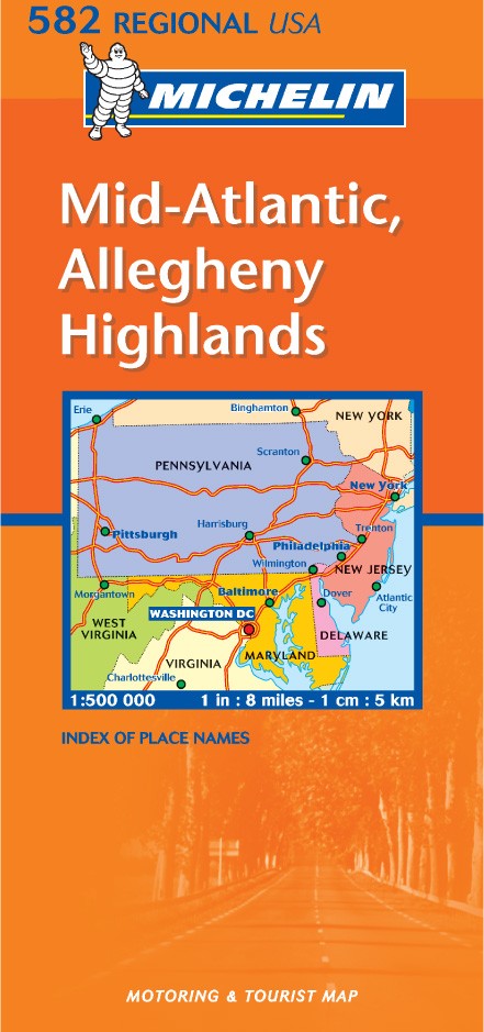 La edición actualizada del mapa Regional New England - Hudson Valley, editado a escala 1/500 000, incorpora además un índice de localidades.