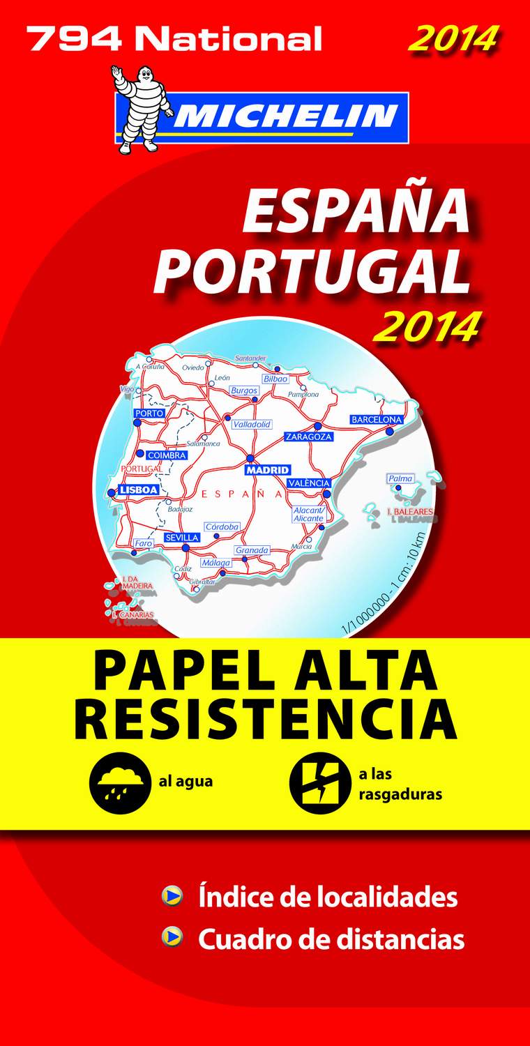 • ESPAÑA PORTUGAL MAPA 1: 1 000 000 MICHELIN ALTA RESISTENCIA 2014