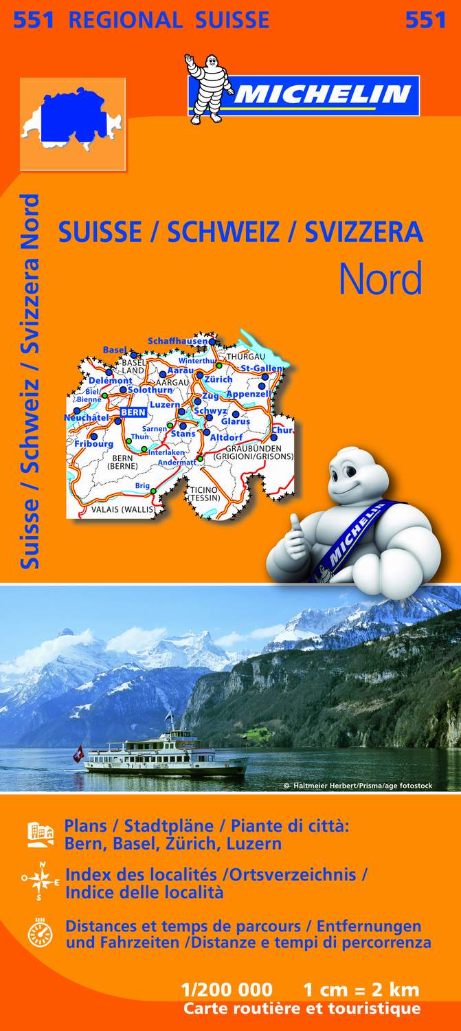 Los mapas de carreteras de la colección Regional resultan idóneos, gracias a su escala detallada, para atravesar y descubrir cualquier región. Debido tanto a su actualización anual como a la gran diversidad de informaciones recogidas en sus signos convencionales, mediante pictogramas de fácil comprensión, los mapas Regional ofrecen una cartografía fiable, a la vez que clara, para facilitar su viaje y orientación. La edición actualizada del Mapa Regional Suisse Nord, editado a escala 1/200 000, incorpora un índice de localidades, cuadro de distancias y tiempos de recorrido entre ciudades, así como los planos de Berna, Basilea, Zúrich y Lucerna