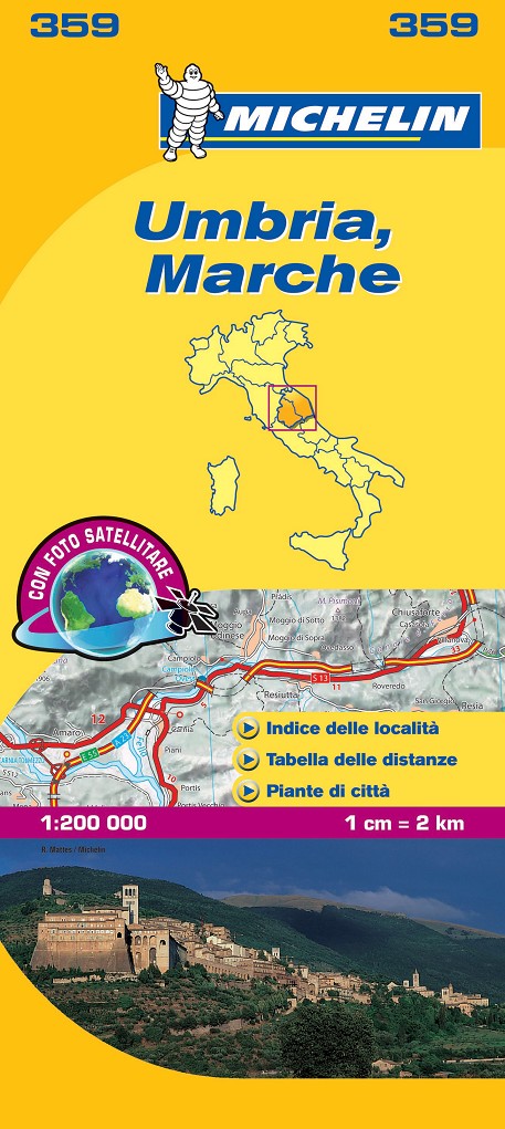 La edición actualizada del mapa Local Umbria, Marche, editado a escala 1/200 000, incorpora un índice de localidades, cuadro de distancias y planos de las ciudades de Spoleto, Perugia, Terni y Assisi.