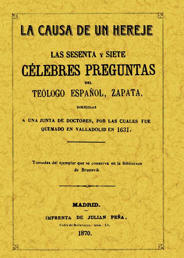 • SESENTA Y SIETE PREGUNTAS CELEBRES DEL TEOLOGO ESPAÑOL ZAPAT