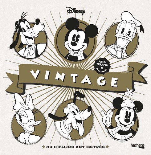 Mickey y Minnie, Donald y Daisy,Horacio y Clarabella.¡Todos te esperan en estas páginas!Descubre a tus personajes favoritoscon estas 80 ilustraciones al más puroestilo vintage y libera tu imaginación.¡Relájate y disfrutadel placer de crear!