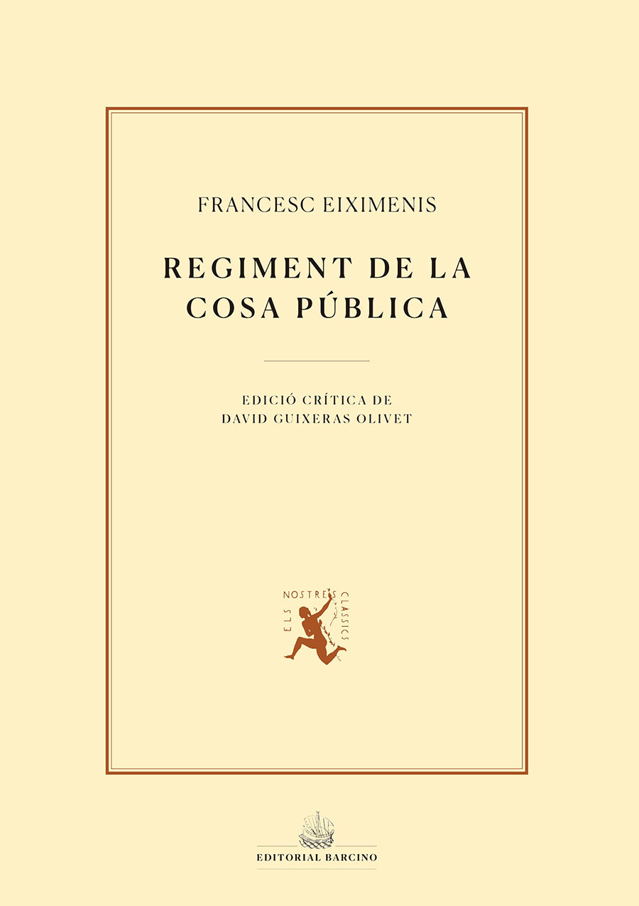 El Regiment de la cosa pública és el tractat polític que Francesc Eiximenis va dedicar als jurats de la ciutat de València el 1383. Sintetitza les idees polítiques d’Eiximenis relatives al govern de l’estat i, en particular, de la ciutat i és una obra fonamental en la configuració del sistema del pactisme català. Aquesta és la primera edició crítica del Regiment feta directament des del millor manuscrit conservat.