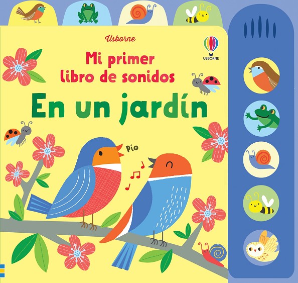 Libro interactivo con un panel lateral de botones para escuchar los sonidos de un jardín. El cantar de los pájaros, el ruido de la lluvia, el zumbido de las abejas, el croar de las ranas o el ulular de los búhos. Las llamativas ilustraciones llenas de color son perfectas para bebés y niños pequeños.