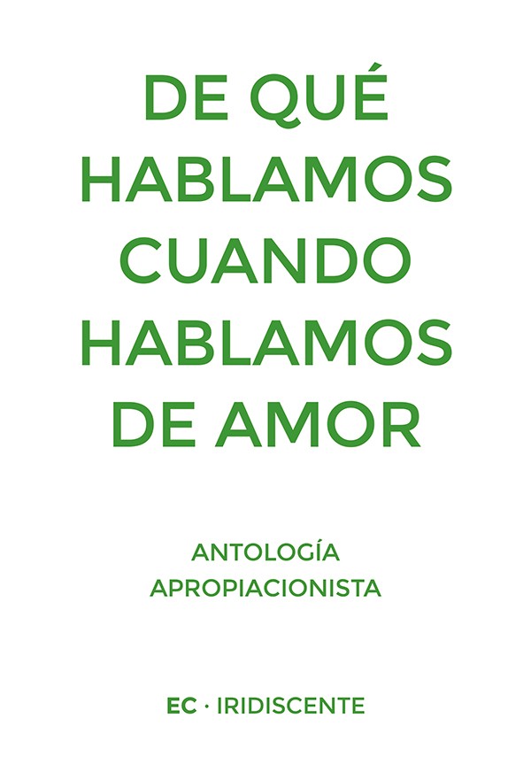 "De qué hablamos cuando hablamos de amor · Antología apropiacionista" reúne a 50 autoras y autores de distintos campos artísticos para configurar un proyecto coral que gira en torno al apropiacionismo como recurso creativo, enfocándolo siempre desde el amor y la admiración. Siguiendo con las herramientas conceptuales marcados por Raymond Carver, que en su momento cimentó su discurso con la obra de Antón Chéjov, cada autor/a se apropia de un/a autor/a diferente hacia el que siente especial predilección, y reformula cuatro fragmentos extraídos de su obra en clave de poema breve. Lo que aquí se presenta, en definitiva, es un amplio compendio de extractos que, apartados de su contexto original y expuestos ahora de manera autónoma, tienen la oportunidad de manifestarse libremente en un nuevo escenario, respaldados por una nueva autoría y con una nueva forma. En el amplio abanico que compone la antología pueden encontrarse artistas plásticas apropiándose de escritores, poetas apropiándose de teóricos del arte, novelistas apropiándose de chefs y un largo etcétera. A nombres que hoy son absolutas eminencias en sus campos, como Kurt Vonnegut, Ursula K. Le Guin o Virginia Woolf, se suman referencias mucho más contemporáneas, como Sabina Urraca, Bo Burnham o Gordom Ramsay.