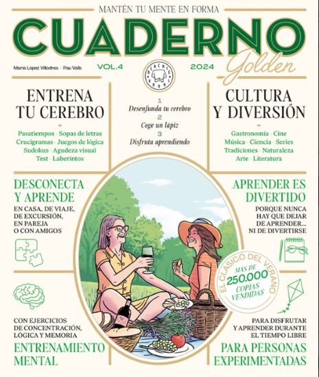 El CUADERNO GOLDEN ofrece pasatiempos, ejercicios de lógica, sopas de letras, sudokus, test, crucigramas pensados con la ayuda de expertos, para mantener la mente activa, la memoria en forma y los pies en la tierra.