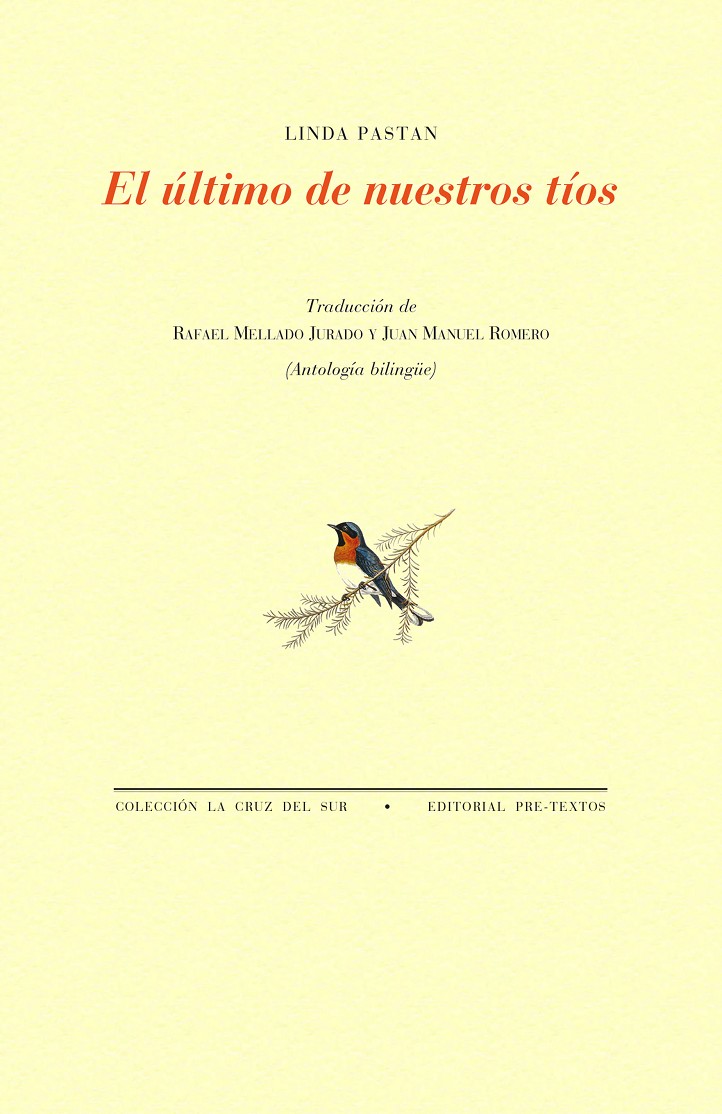 Linda Pastan (1932-2023) fue una poeta estadounidense. Su obra está compuesta por más de quince libros, por los que obtuvo premios como el Dylan Thomas, el Maurice English o el Bess Hokin. También quedó finalista del National Book Award en dos ocasiones, por sus libros PM/AM, en 1983, y Carnival Evening, en 1998. Fue nombrada Poeta Laureada de Maryland de 1991 a 1995 y recibió el prestigioso premio de poesía Ruth Lilly al conjunto de su trayectoria. Algunos de sus títulos más representativos son: A Perfect Circle of Sun (1971), Aspects of Eve (1975), The Five Stages of Grief (1978), A Fraction of Darkness (1982), An Early Afterlife (1995) o Insomnia (2015). El último de nuestros tíos es su primera obra íntegra traducida al español.