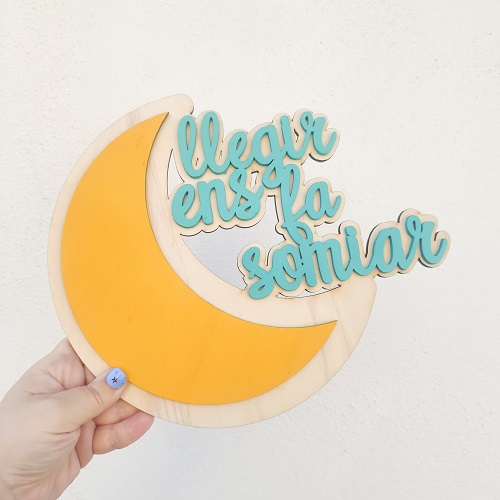 Una decoració amb missatge pel seu raconet de lectura.Decoració de fusta contraxapada i una part pintada a mà.Mida: 25 x 21 cm