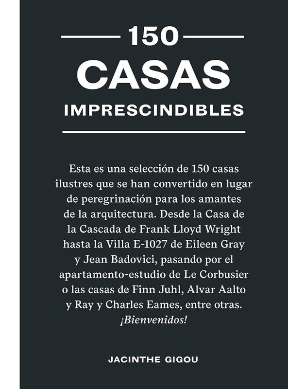 Esta es una selección de 150 casasilustres que se han convertido en lugarde peregrinación para los amantesde la arquitectura. Desde la Casa dela Cascada de Frank Lloyd Righthasta la Villa E-1027 de Eileen Grayy Jean Badovici, pasando por elapartamento-estudio de Le Corbusiero las casas de Finn Juhl,...
