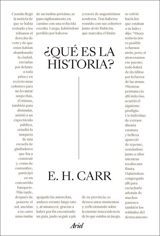 ¿Quién es el protagonista de la historia, la sociedad o el individuo? Millones de personas han cruzado el Rubicón, pero los historiadores nos dicen que sólo en el caso de Julio César este paso fue significativo. ¿Puede considerarse la historia una ciencia? ¿Le es lícito incorporar juicios de valor? ¿Existe un progreso, una dirección en el avance de la historia? Un clásico que sigue conservando el poder de provocar la controversia y de incentivar la reflexión.