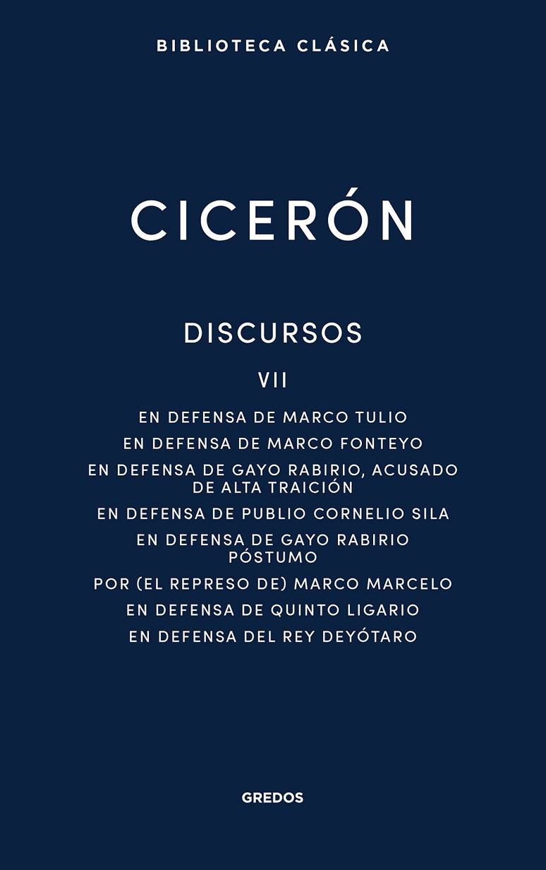 Siguiendo con una labor única en castellano en lo que respecta a la obra oratoria de Marco Tulio Cicerón, Gredos ofrece aquí el volumen VII de sus discursos. Se trata de un corpus excepcional tanto para entender el pensamiento romano, como para examinar las técnicas retóricas de Cicerón, admirar la depuración de su lenguaje y adentrarse en lo que supuso el derecho romano, tanto parta su época como para períodos posteriores.