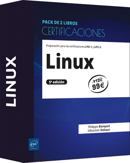 Los exámenes LPI 101 y LPI 102 son los dos exámenes que permiten obtener la «Certificación Linux Server Professional» LPIC-1. En el ámbito profesional, es una prueba de que domina los fundamentos de la administración de sistemas Linux, independientemente de la distribución: instalación y configuración completa de un puesto de trabajo o servidor (físico, virtual o en la nube) y de todos los servicios esenciales asociados, tanto de sistemas como de redes. Los exámenes LPI 201 y LPI 202 son los dos exámenes que conducen a la certificación LPIC-2 «Advanced Level Linux Professional». Estos exámenes demuestran a los profesionales que domina la administración avanzada de un sistema Linux, independientemente de la distribución: certifican las competencias prácticas en la administración de una red pequeña o mediana (administración de los servicios de red actuales, gestión de la seguridad de la red y de los intercambios...). Cada libro cubre todos los objetivos oficiales, tanto desde un punto de vista teórico como práctico. Han sido redactados por formadores profesionales reconocidos. Capítulo a capítulo, podrá validar sus conocimientos teóricos con la ayuda de múltiples preguntas y respuestas que ponen de relieve tanto los elementos fundamentales como las características específicas de los conceptos tratados. Cada capítulo termina con trabajos prácticos que le permitirán medir su autonomía. Estos ejercicios, que van mucho más allá de los objetivos fijados por los exámenes, le permitirán adquirir una valiosa experiencia inicial y verdaderas competencias técnicas en situaciones reales. Un libro de la colección Certificaciones Linux - Preparación a la certificación LPIC-1 (exámenes LPI 101 y LPI 102) (6ª edición) Extracto del resumen: Los exámenes LPI 101 y LPI 102 son los dos exámenes que permiten obtener la certificación LPIC-1 "Certificación Linux Server Profesional". Este programa de certificación del Linux Professional Institute es cada vez más reconocido por los responsables de selección de personal, que ven en esta certificación un requisito previo para la contratación o el acceso a un puesto de administrador? Un libro de la colección Certificaciones Linux - Preparación a la certificación LPIC-2 (exámenes LPI 201 y LPI 202) (5ª edición) Extracto del resumen: Los exámenes LPI 201 y LPI 202 permiten obtener la certificación LPIC-2 ?Advanced Level Linux Professional?. Este programa de certificación del Linux Professional Institute es cada vez más reconocido por los cazatalentos, que ven en esta certificación un requisito para una contratación o para el acceso a un puesto de administrador?.