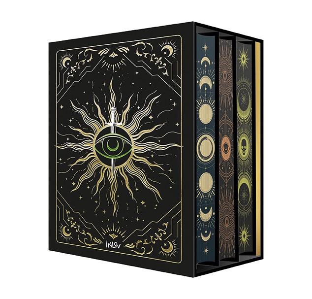 Los tres volúmenes de la saga y una golden box para coleccionistas que incluye: Carta de la autora, adhesivo Black Bird Academy, Ilustración de Gonzalo A. Mendiverry y cartas de tarot