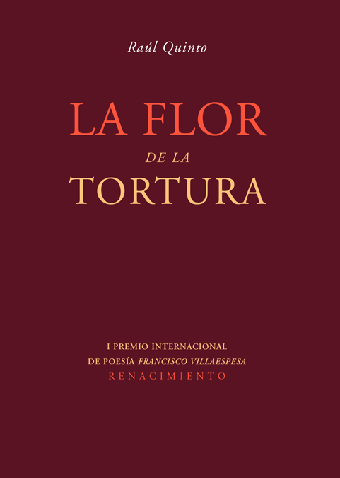 Rilke escribió que "lo hermoso no es más que el comienzo de lo terrible"; justo en ese límite es donde crece La flor de la tortura, un libro con voluntad transgresora que indaga en territorios apenas transitados por la poesía española: la frontera entre lo bello y lo siniestro, entre literatura y grito, el horror como una de las emociones más esclarecedoras de la naturaleza humana. Raúl Quinto consigue una propuesta de gran rigor intelectual que nos invita a la "abolición de lo vivido" para alcanzar una experiencia diferente del lenguaje, en la que la violencia de la visión artística es reflejo de una violencia mucho mayor: la que la Historia ejerce sobre todos nosotros. Raúl Quinto (Cartagena, 1978) es licenciado en Hª del Arte por la Univ. de Granada. Ha publicado los libros de poemas Grietas (Dauro, 2002; reeditado junto a Poemas del Cabo de Gata, La Garúa, 2007) y La piel del vigilante (DVD, 2005), por el que obtuvo el premio Andalucía Joven 2004. Aparece en numerosas antologías y ha sido traducido a varios idiomas. Co-dirige la revista electrónica Oniria www.revistaoniria.com y la colección de poesía de La Garúa Libros.