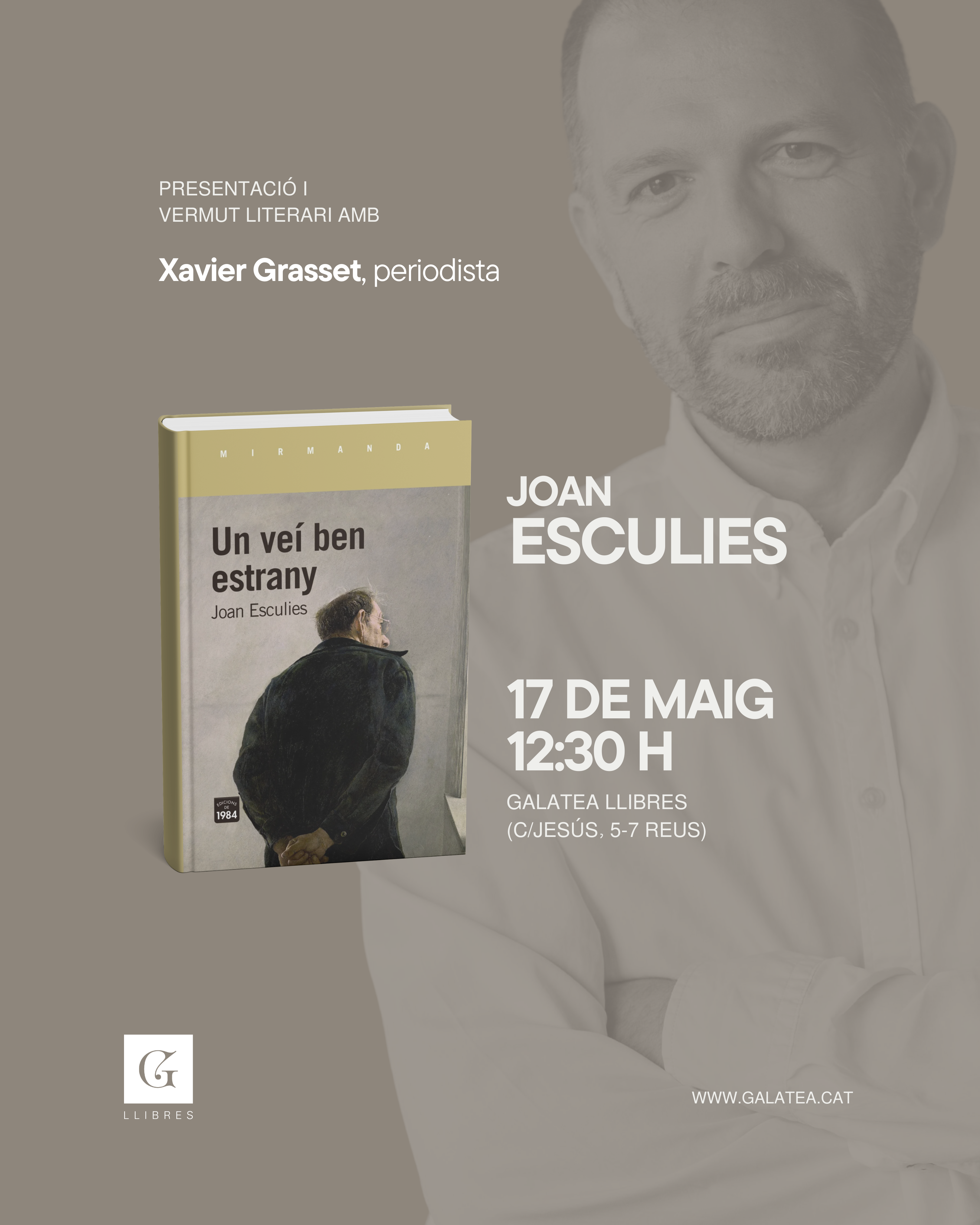 Joan Esculies presenta Un veí ben estrany el proper dissabte 17 de maig, a les 12:30, a la nostra llibreria de Reus. Presentarà l'acte el periodista Xavier Grasset.