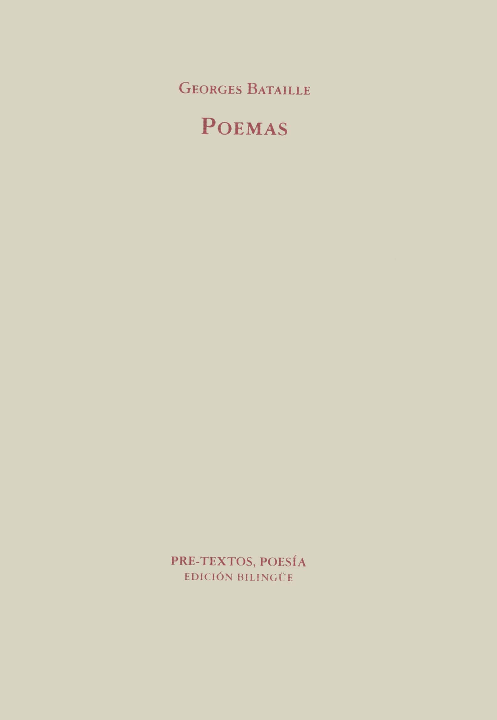 Bajo el título genérico de Poemas se agrupa toda la obra poética póstuma de Bataille, inédita hasta la publicación de sus Obras completa por Gallimard en 1971. Debemos a Tadée Klossowsky el mérito de haber expurgado entre sus manuscritos las estrofas, eliminadas en unos casos, desechadas en otros, de la obra publicada. Su criterio de clasificación, pura y simplemente cronológico, nos ofrece los poemas en el mismo orden de su desvelamiento póstumo, y así, junto a lo que se ha dado en tomar por versión definitiva se encuentran otras versiones, no menos definitivas, de una obra que se define como un conjunto de gestos transgresivos (negatividad de base) en presencia (enfrentamiento y correlación) del sentido y del sujeto (Chatain).
