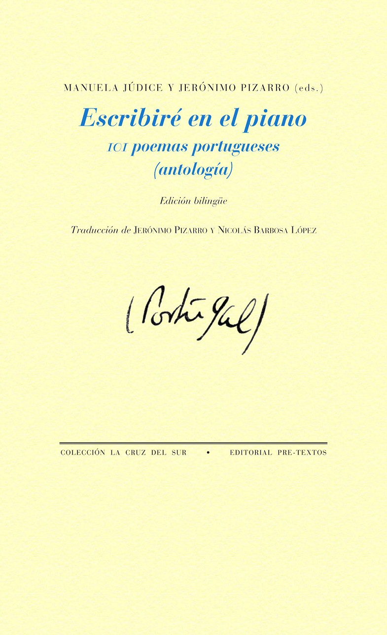 Esta selección de 101 poemas portugueses ha representado un paciente trabajo de traducción guiado por la música, pues la traducción de poesía de una lengua romance a otra permite «cantar» los poemas bajo un marco común. Fue este marco el que hizo posible resolver cuestiones de ritmo, tras las cuales la traducción pudo encauzarse en los demás aspectos de tipo sintáctico, léxico y estético. Bien se sabe que, al ser una de las formas de expresión más elaboradas y rigurosas, la poesía responde a fundamentos de tipo musical sobre los cuales discurren las palabras. No en vano el verso que titula esta antología apareja la escritura y la música: arroja luces sobre lo esencial tanto en la poesía como en la labor de traducción y destaca la importancia de llevar a cabo el ejercicio de la escritura en o sobre una base musical (ya sea un piano o un ritmo silábico).