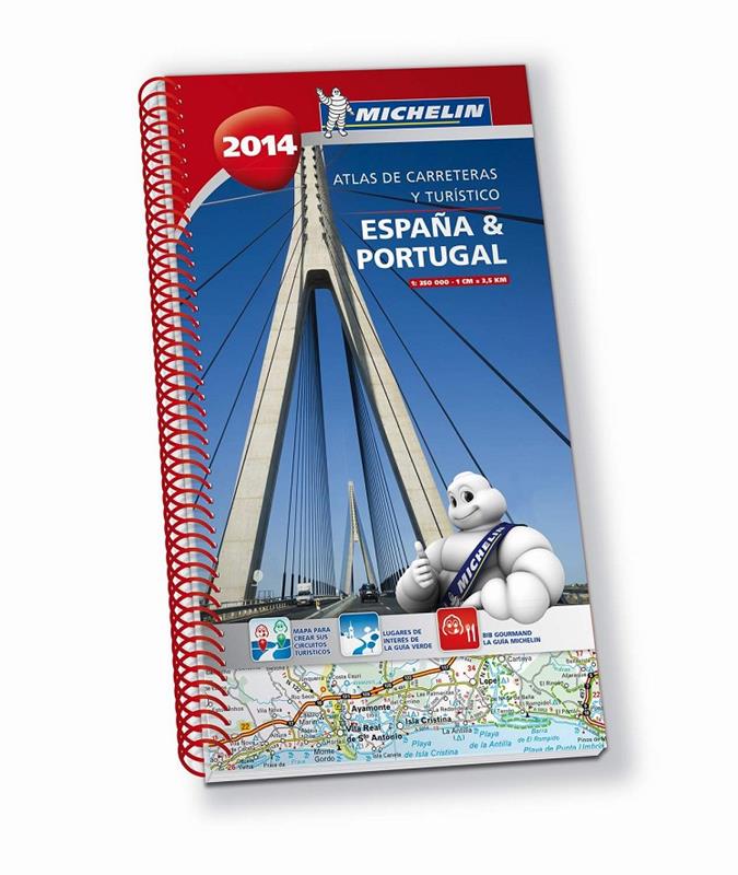 El Atlas de Carreteras y Turístico MICHELIN España & Portugal 2014 recoge cartografía detallada y actualizada de carreteras a escala 1/350 000, planos de ciudades y toda la información turística de utilidad para descubrir España y Portugal fuera de las rutas habituales. También incorpora un mapa-planning a escala 1/800 000 con la ubicación de restaurantes de calidad a precios moderados, extraídos de la selección de La guía MICHELIN, así como lugares de interés turístico provenientes de La Guía Verde.