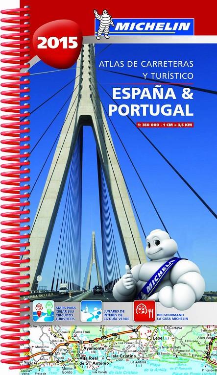 El Atlas MICHELIN España & Portugal 2015 recoge cartografía actualizada a escala 1/350 000, planos de ciudades e información turística para descubrir España y Portugal fuera de las rutas habituales. Incorpora un mapa-planning, a escala 1/800 000, con restaurantes de calidad extraídos de La guía MICHELIN, así como lugares de interés turístico provenientes de La Guía Verde.