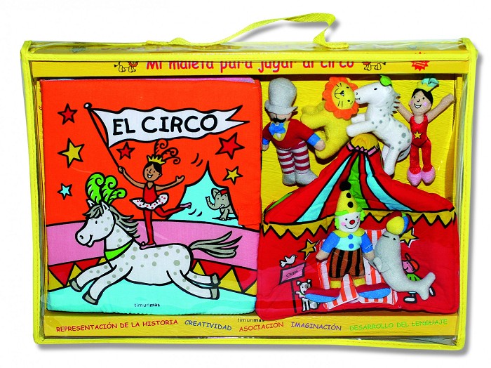 Un libro, un circo y muchos personajes para jugar. En este libro de tela interactivo, el niño tiene que colocar las figuras en las páginas del libro (¡se encganchan con velcro!) y representar, así, la historia de este circo.