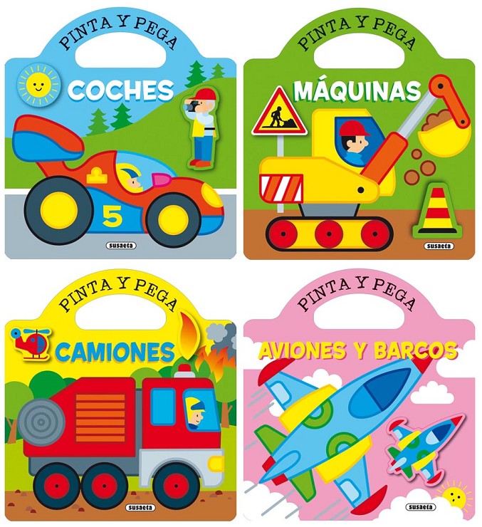 Con esta colección, podrás divertirte con tus vehículos preferidos (coches, máquinas, camiones, aviones, barcos): colorea siguiendo las indicaciones o como más te guste a ti, y coloca las pegatinas para completar las escenas. ¡Arranca y que te diviertas!