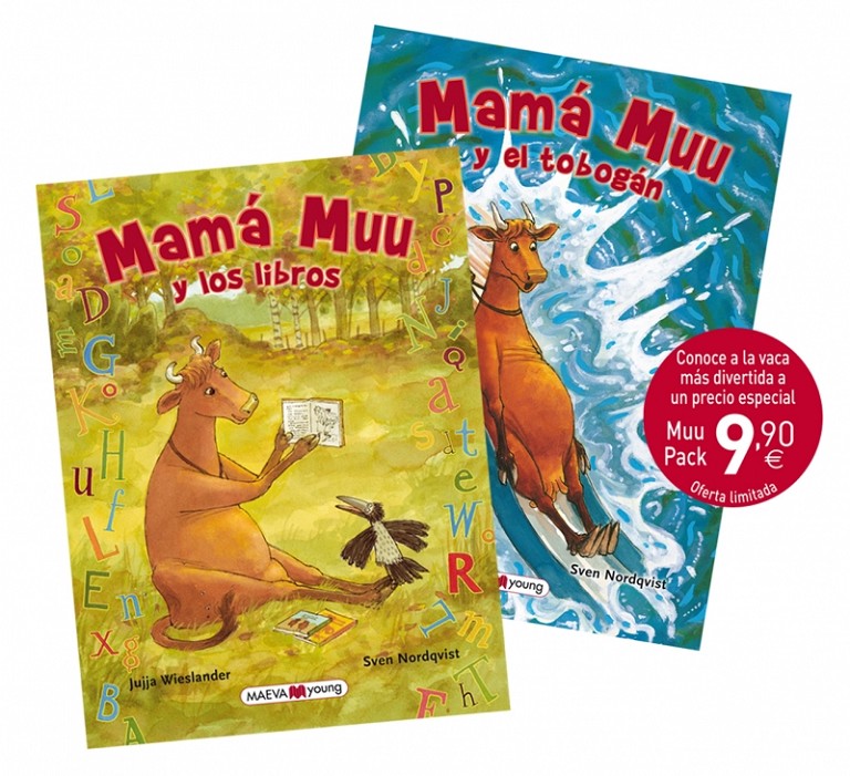 Mamá Muu y los librosMamá Muu quiere aprender a leer. Cuervo, su mejor amigo, piensa, como tú, que es muy extraño que una vaca no se dé cuenta de que es una vaca, y de que las vacas comen hierba y están en los prados, no se sientan en una biblioteca a leer libros. Pero no hay vaca más cabezota e intrépida que Mamá Muu y, en esta ocasión, gracias a su amiga Lina, descubrirá los secretos maravillosos de los libros. Aunque Cuervo no entiende la nueva pasión de Mamá Muu, para él no hay nada más divertido que estar a su lado.Mamá Muu y el tobogánMamá Muu no puede dejar de soñar con una nueva aventura: tirarse por un tobogán y caer al agua. Cuervo intenta disuadirla, pero como siempre no lo consigue. Mamá Muu lo ha visto hacer a los niños y le parece la idea más divertida del mundo. Pero ella es una vaca, como le recuerda Cuervo, y las vacas no pueden hacer esas cosas.