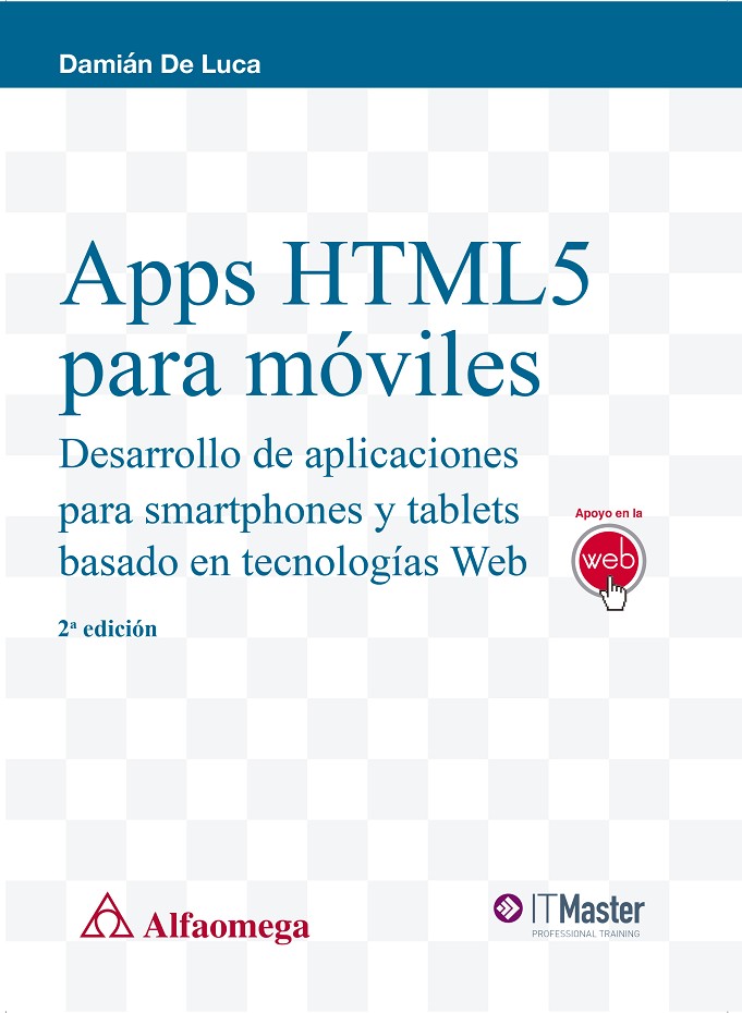 La creación de aplicaciones para móviles introduce nuevos desafíos para los desarrolladores. Es frecuente que surjan dudas sobre la elección de las herramientas, lenguajes y tecnologías adecuadas para poder lograr compatibilidad con la diversidad de dispositivos y sistemas existentes. Este libro nos ofrece un completo recorrido sobre las posibilidades que brinda hoy el desarrollo de aplicaciones Web para smartphones y tablets. Mediante conceptos y ejemplos, nos adentraremos en el mundo de los móviles y con un proyecto práctico como hilo conductor aprenderemos a pensar cada etapa. La propuesta se inicia en el conocimiento de las plataformas y sus características, para luego introducirnos en el desarrollo de una aplicación, desde su planeamiento inicial hasta su publicación. Esta obra nos enseña cómo aprovechar las ventajas que incorpora HTML5 para crear aplicaciones basadas en lenguajes y tecnologías Web para luego publicarlas en Internet o empaquetarlas y ofrecerlas en las tiendas online. Damián De Luca: es experto en HTML5 y profesor en ITMaster Professional Training de la carrera de Programador Web y de los cursos PHP y MySQL, LESS y SASS, Responsive Web Design, HTML5 y CSS3, PhoneGap y Mobile Web con HTML5. También ha brindado charlas y capacitaciones en importantes empresas en diferentes ciudades de la región.