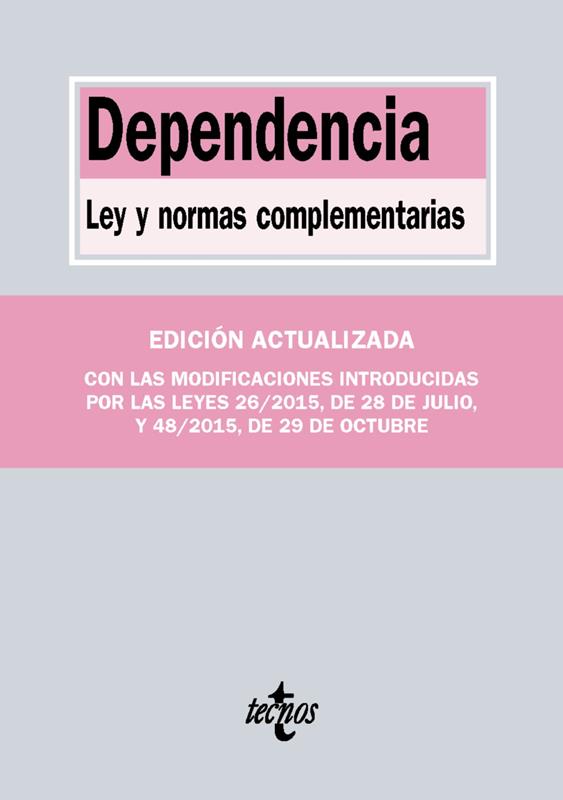 Esta nueva edición ofrece el texto de la Ley 39/2006, de 14 de diciembre, de Promoción de la Autonomía Personal y Atención a las personas en situación de dependencia, con la incorporación de todas las modificaciones sufridas hasta el momento, incluidas las introducidas por la Ley 26/2015, de 28 de julio, de modificación del sistema de protección a la infancia y a la adolescencia, y por la Ley 48/2015, de 29 de octubre, de Presupuestos Generales del Estado para el año 2016.