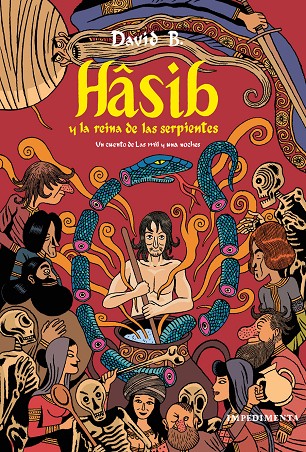 Un acontecimiento en el mundo del cómic. El mítico David B. («Epiléptico», «Los sucesos de la noche») plasma en «Hâsib y la reina de las serpientes» un universo lleno de monstruos, dioses, sabios, serpientes, bellas mujeres y piratas. Una obra maestra del cómic europeo, por fin editada en castellano