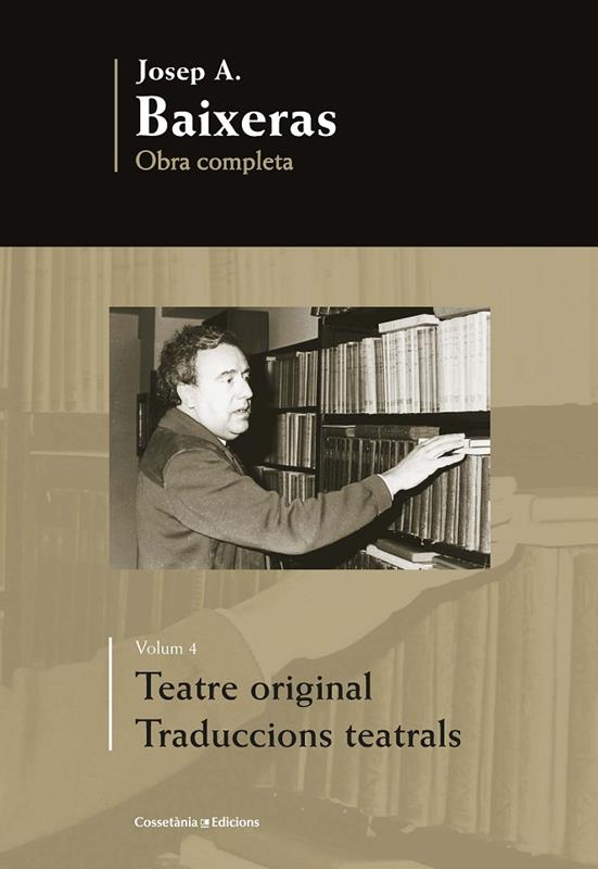 Tot i que la part més coneguda de l'obra literària de Josep A. Baixeras és la narrativa, recollida en els dos primers volums d'aquesta edició de l'Obra completa, la seva afició al teatre com a espectador va traduir-la en una bona colla de peces, la majoria de les quals no va arribar als escenaris i algunes ni tan sols es van publicar. Alhora, el seu coneixement de la llengua i la cultura alemanyes li va permetre traduir al català algunes rellevants obres de teatre d'aquesta procedència, d'autors com Goethe i Turrini. Amb aquest material, obres de teatre originals de l'autor o traduïdes per ell, s'ha confegit aquest quart volum de la seva obra. En total, s'hi recullen 13 textos. El teatre de Baixeras es caracteritza per la seva ironia i mordacitat, encara més que la seva narrativa, per un peculiar tractament de la sexualitat i, també, per la descripció, sovint pròxima a la caricatura, de la societat en què estava immers. El volum ve acompanyat de dos pròlegs, un de referit a l'obra teatral original, escrit per Alba Tomàs, i un sobre les seves traduccions, a càrrec de Jordi Jané.