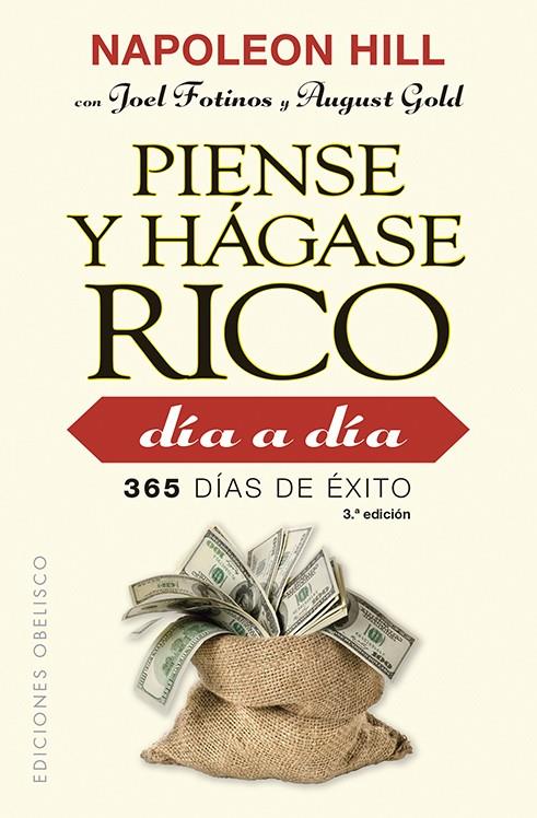 365 días de éxito De la obra Piense y hágase rico, de Napoleon Hill, se llevan vendidas desde su primera edición millones de copias, y en la actualidad sigue siendo uno de los libros más vendidos en el mercado. Ahora esta obra clásica se convierte, de la mano de Joel Fotinos y August Gold, en un manual de trabajo para conseguir el éxito y la abundancia, constituyendo una guía diaria insustituible para quienes quieran disfrutar deuna mayor prosperidad en sus vidas. La idea primordial de Napoleon Hill es la de que cada uno de nuestros días cuenta y nos ofrece, además, nuevas oportunidades. Esta idea se convierte en el presente libro en una filosofía innovadora. Este volumen incluye también «Los seis pasos para el éxito», una aplicación práctica de la filosofía de Hill, un plan de acción diaria para lograr el éxito en todos los ámbitos de la vida.