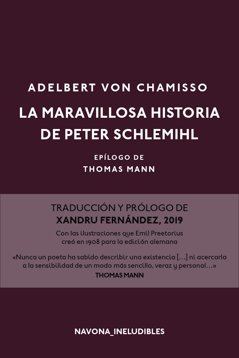 El joven Schlemihl vende su sombra al diablo a cambio de una bolsa llena de oro que nunca se agota. El anhelo de riqueza le conducirá al lujo, pero con él llegarán también el hastío y el ansia de normalidad. “Alguien a quien no señalen con el dedo por carecer de sombra.” La maravillosa historia de Peter Schlemihl es, así, un cuento simbólico que gozó de un éxito enorme desde su publicación en 1814, apenas cinco años después del famoso Fausto de Goethe, con el que guarda a la vez similitud y distancia.