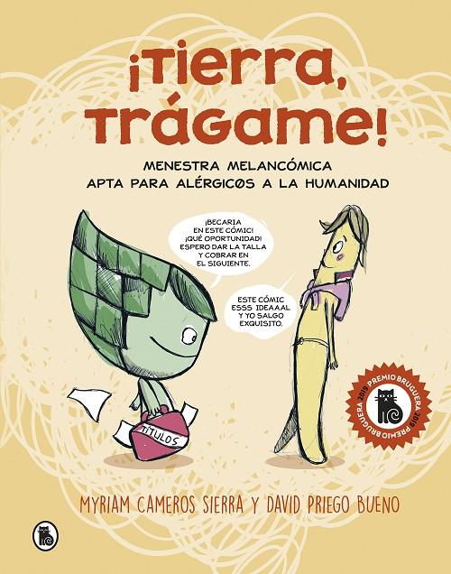 I PREMIO BRUGUERA DE CÓMIC Y NOVELA GRÁFICA 2019 ¡Tierra, trágame!, galardonada como mejor obra en la edición del Premio Bruguera 2019, es una brillantísima tragicomedia en la que un grupo de verduras y frutas se parecen sospechosamente a los humanos y viven sus mismas calamidades: amores líquido...