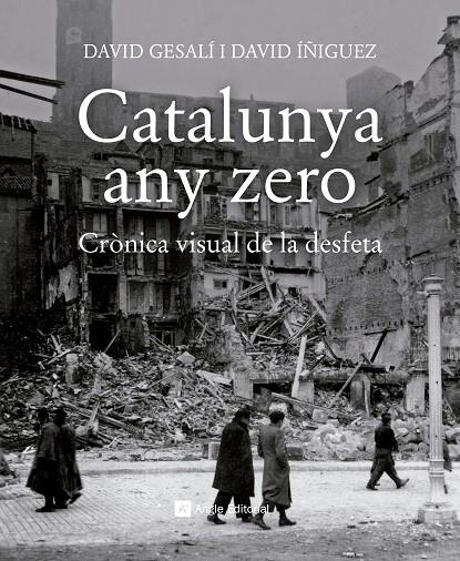 Catalunya any zero ens presenta la brutal destrucció del territori i la societat catalanes a mesura que va caient en mans de l'exèrcit franquista. «Al final de cada bomba llençada hi ha moltes vides. I molts mons que s'ensorren», diuen els autors. Per això ens mostren l'ensorrament físic d'infraestructures i edificis, que amb la pèrdua de les institucions i la identitat pròpies, dibuixaven un futur negríssim per a Catalunya. El llibre trepitja gairebé tot el territori català i les imatges, fetes sobretot pel bàndol vencedor, van acompanyades, en un extraordinari contrast, de narracions personals dels perdedors: soldats i civils que van viure la guerra en primera persona. El lector té a les mans, doncs, un llibre rigorós i insòlit, amb nombroses imatges mai vistes i que marca el punt més baix de Catalunya, amb el país devastat i un futur hostil.