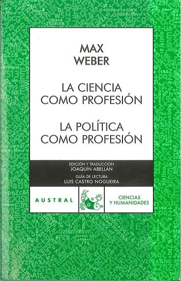 En La ciencia como profesión analiza Max Weber (1864-1920), uno de los máximos pensadores del siglo xx, los caracteres de la ciencia contemporánea y la situación del científico profesional, y expone con total claridad su posición respecto a las funciones, sentido y límites de la ciencia para la vida del hombre. Weber pone de manifiesto la imposibilidad de fundamentar científicamente las propias decisiones personales respecto a los valores últimos con que cada uno orienta su vida. La política como profesión ofrece, junto a algunos conceptos básicos del pensamiento político de Weber, un análisis de los distintos tipos de políticos profesionales y de la relación existente entre la actividad política y la ética. En este acertado análisis se distingue entre ética de la responsabilidad y ética de las convicciones (o de principios absolutos), el autor cree, sin embargo, que sólo la conjunción de ambas éticas puede formar al hombre con auténtica vocación para la política. La espléndida edición de Joaquín Abellán y el apéndice de Luis Castro Nogueira, nos sitúan la vida y la obra de Max Weber en el contexto histórico de la Alemania de 1919.