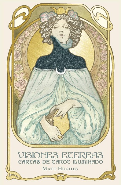 Deseando resaltar el mensaje del manual de las visiones etéreas, Matt hugues se inspira en el movimiento art nouveau. Imagina el tarot de la iluminación, enriquecido con dos nuevas cartas que completan los principales arcanos tradicionales. Su creación ilustra perfectamente su estilo reconocible entre todos y su enfoque meticuloso de la maestría artesana. Las imágenes detalladas que decoran las 80 cartas del paquete están dibujadas y coloreadas a mano. Cada carta está elegantemente iluminada con un estampador de hojas de oro. Caja con libreto de 68 páginas.