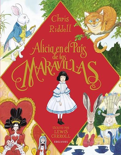 Un día aburrido como tantos otros, Alicia se duerme y de este modo entra en el País de las Maravillas de la mano del Conejo Blanco. Allí conocerá a la Falsa Tortuga, la Reina de Corazones, el Gato de Cheshire, la Duquesa, el Sombrerero Loco o la Liebre de Marzo, entre otros muchos personajes fantásticos con los que vivirá aventuras de lo más variopintas. Las expresivas ilustraciones de Chris Riddell resaltan el humor absurdo y fantástico de este texto imperecedero.