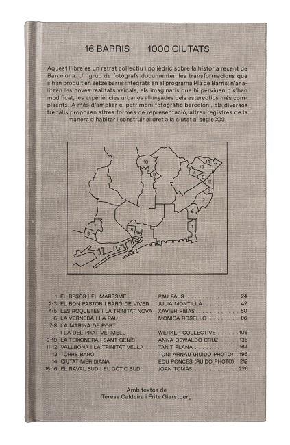 Aquest llibre és un retrat col·lectiu i polièdric sobre la història recent de Barcelona. Un grup de fotògrafs documenten les transformacions que s’han produït en setze barris integrats en el programa Pla de Barris: n’analitzen les noves realitats veïnals, els imaginaris que hi perviuen o s’han modificat, les experiències urbanes allunyades dels estereotips més complaents. A més d’ampliar el patrimoni fotogràfic barceloní, els diversos treballs proposen altres formes de representació, altres registres de la manera d’habitar i construir el dret a la ciutat al segle XXI.