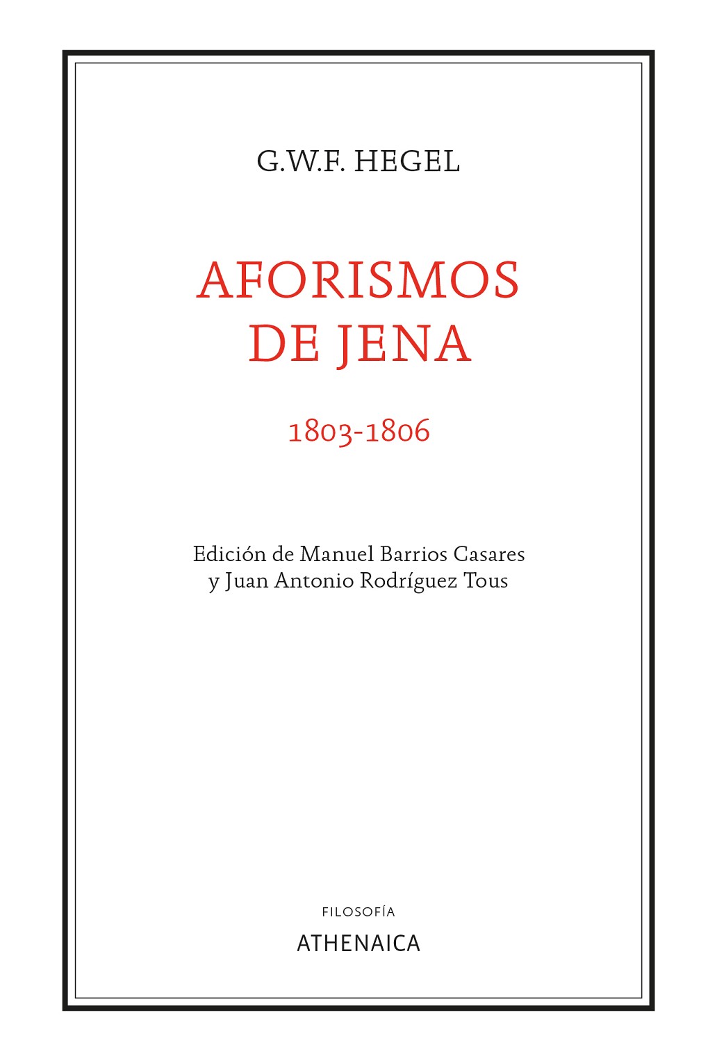 HEGEL, GEORG WILHELM FRIEDRICH ATHENAICA Ref. 9788418239670 Altres productes de la col·lecció Altres productes del mateix autor