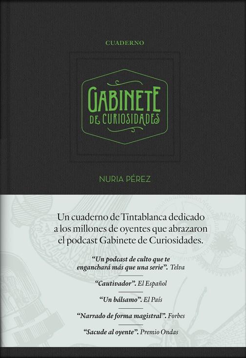 Un cuaderno de Tintablanca dedicado a los millones de oyentes que abrazaron el podcast Gabinete de Curiosidades, lleno de preguntas, reflexiones, citas y curiosidades.El Cuaderno Gabinete de Curiosidades de Tintablanca es el más bello homenaje a uno de los más escuchados, admirados y premiados podcast de los últimos años. Aquel espacio, al igual que este cuaderno, es obra de Nuria Pérez. En sus páginas los seguidores de Gabinete de Curiosidades encontrarán las claves, las historias, las frases y los maravillosos retos que Nuria Pérez puso en pie en su podcast. Con la elegancia y la sofisticación que caracterizan los libros y cuadernos de escritura de Tintablanca, este singular objeto dedicado a la caligrafía y la memoria es el broche de oro a uno de los podcast más escuchados, con más de dos millones de oyentes de cuarenta países del mundo.