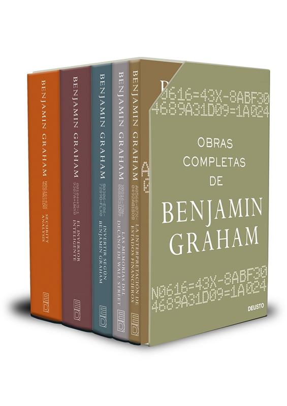 Este pack incluye la obra magna del padre de la inversión en valor. Graham escribió tres de los textos fundacionales de la inversión neoclásica: Security Analysis (Deusto, 2023); El inversor inteligente (Deusto, 2022), que fue publicado en 1949 y que a lo largo de los años se ha convertido en uno de los clásicos imprescindibles que todo inversor debe leer al menos una vez en su vida; una valiosa colección de artículos, Invertir según Benjamin Graham (Deusto, 2022) y La interpretación de estados financieros (Deusto, 2022), escrito con la colaboración de Spencer B. Meredith. Escribió, asimismo, su autobiografía: Las memorias del decano de Wall Street (Deusto, 2023).